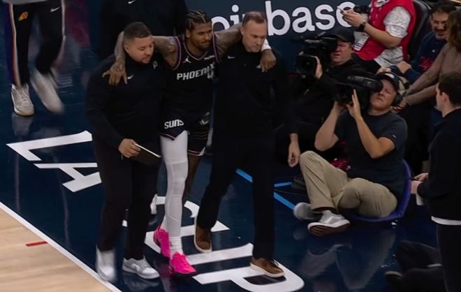 北京时间11月9日,在太阳客场对阵快船的比赛,太阳新援杰伦-格林在复出第二场再次受伤。格林首节疑似出现右大腿腿筋拉伤情况,随后被队医搀扶返回更衣室。